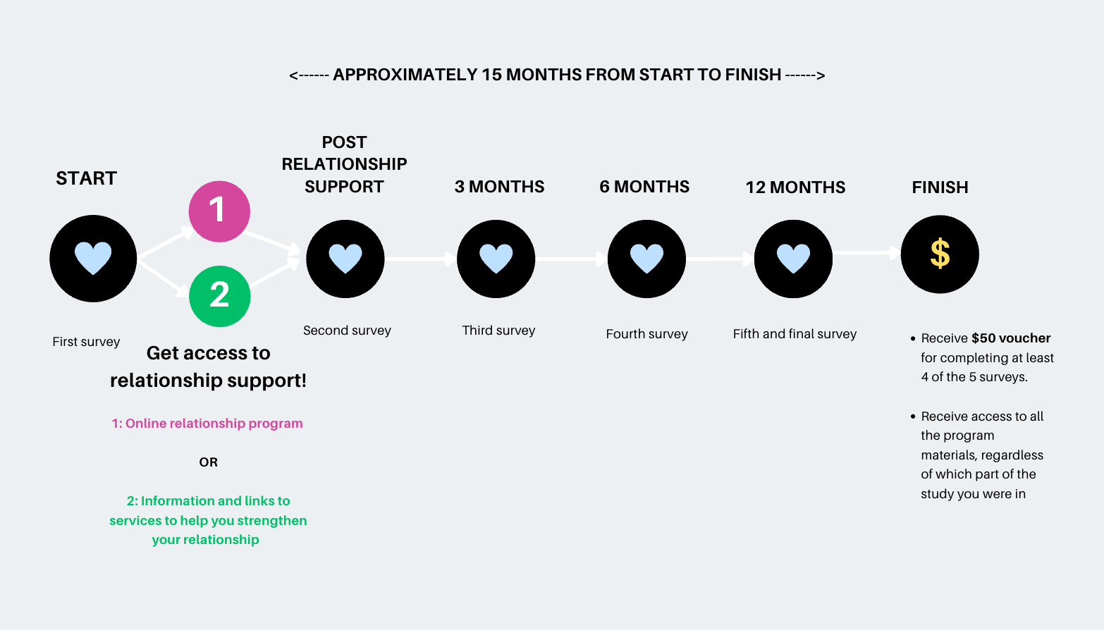 If you are eligible, you will get FREE access to an online program OR be provided with information and links to services to help you strengthen your relationship.